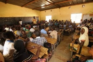Un aula de uno de los colegios de Rimkieta en los que becamos a los niños