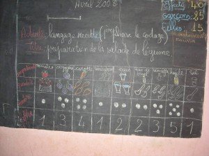 La primera es la presentación de los ingredientes, para lo que Rihanata ha hecho un cuadro en la pizarra listando sus ingredientes y les ha explicado a los niños las características de cada uno de ellos.