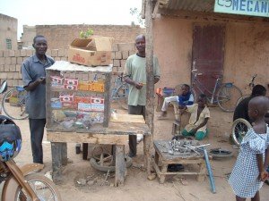 Paul, nuestro casero del terreno donde está la actual maternelle, que tiene un taller mecánico, ha puesto en marcha con la ayuda de la FAR una nueva parte de su negocio: la venta de piezas de recambio. Ahora las gentes del barrio de Rimkieta pueden ir a su taller a comprar algunas piezas sin tener que salir del barrio y sobre todo, él puede hacer las reparaciones