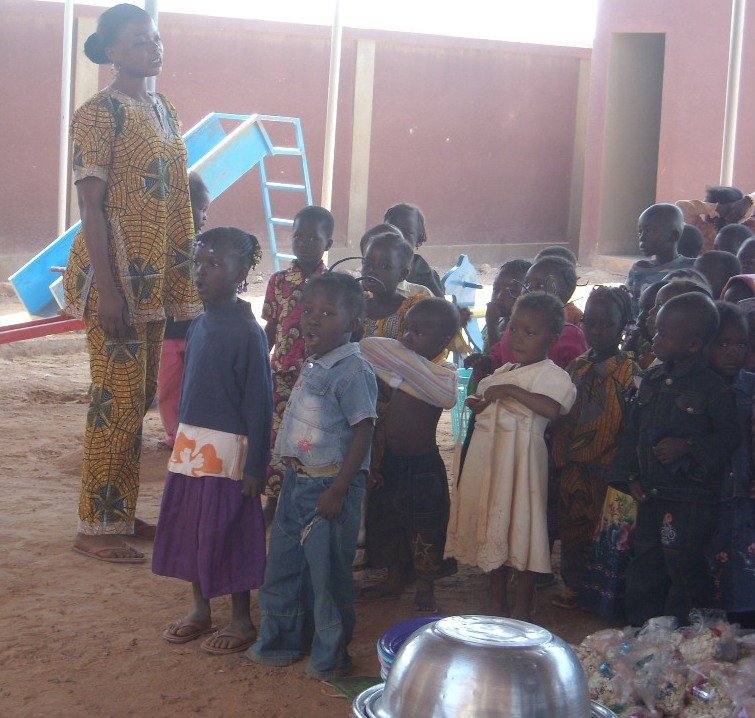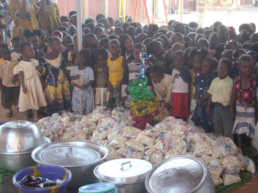 Las profesoras prepararon una comida muy especial a base de «riz gras», judías verdes y «bissap» (bebida refrescante) y una bolsita de palomitas con una chocolatina de regalo para cada niño.