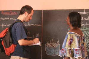 De vuelta a la maternelle, hemos comido un maravilloso plato de pasta preparado por la gran Leonie, la cocinera del parvulario. Y al acabar, ha llegado Zovit para vernos. Zovit, que ya en 2008 nos ayudó con la compra de las parcelas donde actualmente está situada la maternelle y demás instalaciones de la FAR en Rimkieta, nos está echando actualmente una mano para conseguir la propiedad de las parcelas que el ayuntamiento nos ha hecho promesa de concesión.