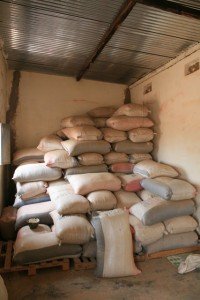 Después hemos ido al Banco de Cereales, a ver a Robert, el encargado de la venta del cereal. Tenemos previstos dos nuevos proyectos que situaremos en el mismo terreno. Por un lado un Molino de Cereales, que se situará junto al actual banco de cereales, para facilitar el molido del cereal nada más comprarlo, evitando así que se tengan que trasladar kilómetros para molerlo o que hacerlo de manera manual al llegar a casa. Por otro, un “Cyber-office” para facilitar el acceso a ordenadores, impresoras, escáner y conexión a internet en el barrio. La construcción de ambos edificios estará también en manos de Albert y hemos dedicado un buen rato para, de la mano de Robert, ver sobre el terreno donde se van a construir. Bueno, Albert ha dedicado un buen rato… yo no he podido remediar, al ver que Albert se mueve como pez en el agua en todo esto, descolgarme un poco y jugar al corro de la patata y a cantar con los niños de los alrededores del banco que ya me conocen y con quienes siempre que puedo me gusta jugar!