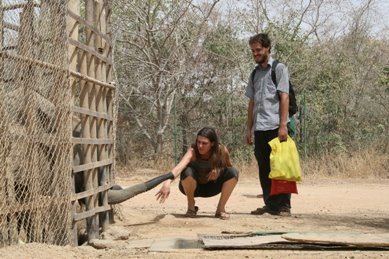 una caseta encerrado; otro para 2 elefantes bastante pequeñitos, de 4 años que han estado jugando con Bruno y Laura; otro para las tortugas (tres en total) que estas si me han dado penita…; otro para dos hipopótamos que no creo que se muevan en todo el día porque no tienen ni agua donde mojarse; otro para un par de «ñus»; otro para un animal que no sé su nombre que es el dibujo animado “Pumba” del Rey León (sorry!!!) que estaba ahí solo, debía de tener como poco diez millones de años y le debían de quedar dos telediarios al pobre; otro con dos hienas que estas si estaban activas (demasiado quizás???) y unas jaulas, una de ellas pequeña para 3 monos, otra más pequeña para otros 2 y una tercera