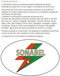 Comunicado de la SONABEL informando con antelación de cortes de electricidad. Es de agradecer, aunque suele ser poco común…
