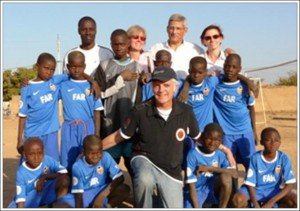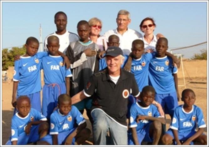 Reunión con Idrissa, encargado del proyecto de entrenamiento de fútbol y nuevo proyecto de «Niños de la calle». Entrega de material deportivo donado por el Valencia CF, Real Madrid CF y Atlético de Madrid CF.