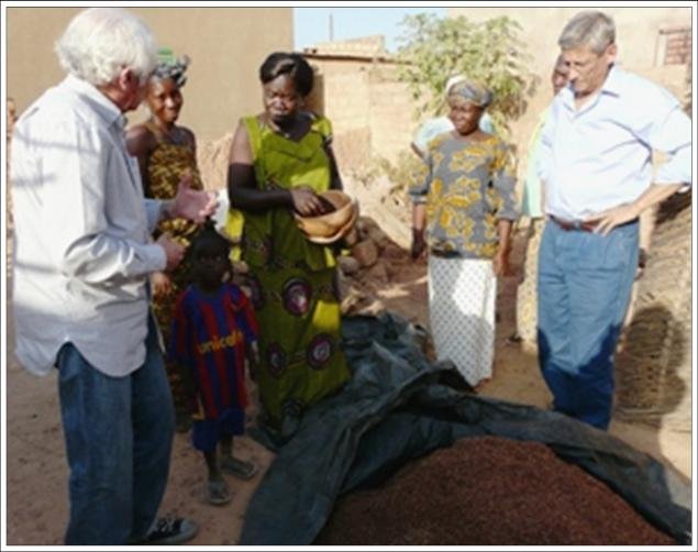 Reunión con Sylvie, encargada de los microcréditos, para supevisar el buen funcionamiento del proyecto y paseo por el barrio visitando a las mujeres en sus puestos de trabajo (la mayoría pequeños puestos en la puerta de casa de venta de leña, tortas de mijo, arroz, etc.) logrados con un microcrédito. En la imagen, con las mujeres de los microcréditos.