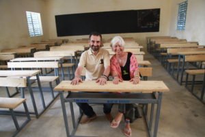 Gonzalo et Sara, dans l’une des salles de classe de l’école du village de Yarcin construite par Yamlaminim.