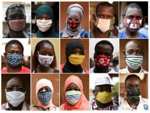 Différents masques faciaux vus à Ouaga. Photo: Anne Mimault