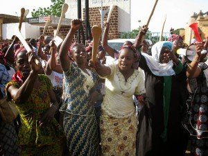 Les femmes en se manifestant avec leur spatules bien haut. Photo RFI_Yaya Boudani