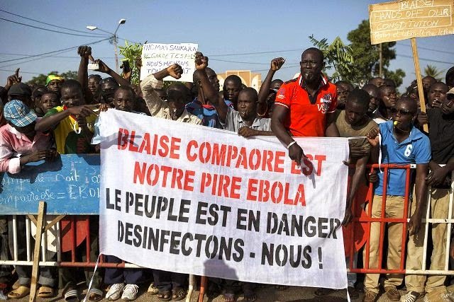 Des consignes des pancartes du 29 : « Blaise est notre pire Ebola », le peuple est dans un danger. Desinfectons-nous! » ou « Blaise, enlève les mains de notre constitution. Du pain et e la liberté pour le peuple ». Photo: RFI