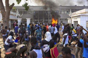 JOUR 3, Jeudi 30. Malgré le déploiement des mesures de sécurité, les forces d’élite, après avoir essayé de disperser les manifestants avec des tire en l’air, gaz lacrymogènes et jetsd’eau, se sont vus obligés de permettre l’accès des manifestants, qui purent entrer dans l’Assemblée. Après l’avoir saquée, ils lui ont mis feu au bâtiment et ont fait de même avec la RTB (Radio Télévision du Burkina). L’aéroport a été fermé et tous les vols suspendus. Le Porte-parole du Gouvernement confirma qu’il n’y aurait pas de vote. Mais les jeunes en voulaient davantage : la démission du Président. Et c’est ainsi que commença une révolte sociale dans toutes les villes du pays.